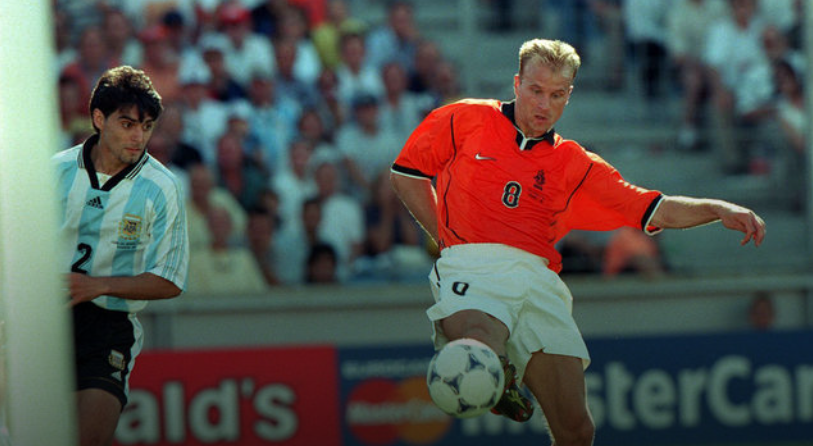 1998 ലോകകപ്പിനുള്ള യോഗ്യതാ മത്സരങ്ങളിലായിരുന്നു ബെര്ഗ്ക്യാംപ് തന്റെ ആദ്യ അന്താരാഷ്ട്ര ഹാട്രിക്ക് നേടുന്നത്. 96ല് വെയ്ല്സിനെതിരെയായിരുന്നു ഇത്. 98 ലോകകപ്പില് ബെര്ഗ്ക്യാംപ് മൂന്ന് ഗോളടിച്ചു. ക്വാര്ട്ടര് ഫൈനലില് അര്ജന്റീനയ്ക്കെതിരെ അവസാന നിമിഷം നേടിയ ഗോളും അതിലുള്പ്പെടുന്നു. ആ ഗോളും ആ മത്സരവും ഇന്നും ആരാധകര് ഓര്ത്തിരിക്കുന്നു. 60 വാര അകലെനിന്ന് ഫ്രാങ്ക് ഡിബോയര് വായുവിലൂടെ നല്കിയ പാസ് ഒരൊറ്റ ടച്ചില് നിയന്ത്രണത്തിലാക്കിയ ബെര്ഗ്ക്യാംപ് അര്ജന്റീനയുടെ വിഖ്യാത ഡിഫന്ഡര് റോബര്ട്ടോ അയാളയുടെ കാലുകള്ക്കിടയിലൂടെ മുന്നോട്ടിട്ട് വലതുകാലിന്റെ പുറംഭാഗം കൊണ്ട് അടിച്ച ഉഗ്രനൊരു വോളിയിലൂടെ ഫിനിഷ് ചെയ്യുകയായിരുന്നു. മൈതാനത്തിന്റെ വലതുഭാഗത്തുനിന്ന് ഏറെ ബുദ്ധിമുട്ടേറിയ ആംഗിളില് നിന്നായിരുന്നു ബെര്ഗ്ക്യാംപിന്റെ ആ ഷോട്ട്. അത് അര്ജന്റീനിയന് ഗോളി കാര്ലോസ് റോവയ്ക്ക് തടുക്കാനായില്ല. ആ ഗോളാണ് കരിയറിലെ തന്റെ ഏറ്റവും മികച്ച ഗോളെന്ന് ഡെന്നിസ് ബെര്ഗ്ക്യാംപ് എപ്പോഴും പറയും. അത്രമേല് പ്രിയപ്പെട്ടതായിരുന്നു അയാള്ക്ക് ആ ഗോള്. ബെര്ഗ്ക്യാപിന്റെ കരിയറിലെ 36-ാമത്തെ അന്താരാഷ്ട്ര ഗോളായിരുന്നു അത്. ആ ഗോളോടെയാണ് ഫാസ് വില്ക്സിന്റെ ഹോളണ്ട് റെക്കോഡ് ബെര്ഗ്ക്യാംപ് മറികടന്നത്. ആ മത്സരത്തില് പാട്രിക്ക് ക്ലൈവര്ട്ട് നേടിയ ആദ്യ ഗോളിന് വഴിയൊരുക്കിയതും ബെര്ഗ്ക്യാംപായിരുന്നു. ആ മത്സരത്തില് നെതര്ലന്റ്സ് ഒന്നിനെതിരെ രണ്ട് ഗോളുകള്ക്ക് അര്ജന്റീനയെ തോല്പിച്ച് സെമിഫൈനലിലെത്തി. അര്ജന്റീനയ്ക്കെതിരായ ആ ജയം നെതര്ലന്റ്സിന്റെ ഫുട്ബോള് ചരിത്രത്തിലെത്തന്നെ എക്കാലത്തെയും മികച്ച ജയങ്ങളിലൊന്നായി വിലയിരുത്തപ്പെടുന്നു. എന്നാല് സെമിയില് ബ്രസീലിനോട് തോറ്റ് നെതര്ലന്റ്സ് പുറത്തായത് ബെര്ഗ്ക്യാപിന് വലിയ നിരാശയായി. ബ്രസീലിനെതിരായ മത്സരത്തില് നിശ്ചിത സമയത്ത് ഇരുടീമുകളും ഓരോ ഗോളടിച്ച് സമനിലയില് പിരിഞ്ഞതിനാല് ഷൂട്ടൗട്ടിലേയ്ക്ക് നീളുകയായിരുന്നു. ഷൂട്ടൗട്ടില് താനെടുത്ത പെനാല്റ്റി കിക്ക് ബെര്ഗ്ക്യാംപ് ഗോളാക്കിയെങ്കിലും ടീം തോറ്റു. ടൂര്ണമെന്റിലെ ഓള് സ്റ്റാര് ടീമില് ബെര്ഗ്ക്യാംപും ഉള്പ്പെട്ടു.